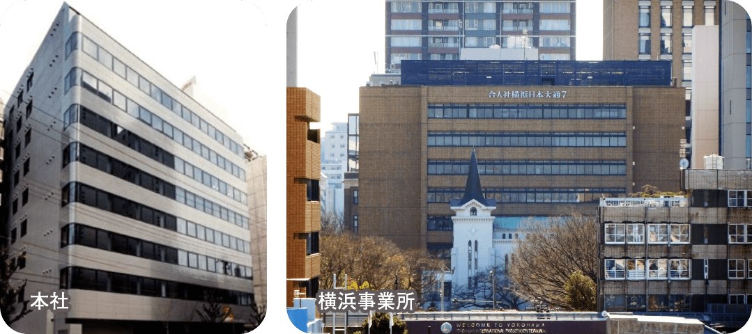 横浜事業所みなとみらい線「日本大通り駅」 徒歩1分、ブルーライン線「関内駅」 徒歩10分、JR 根岸線「関内駅」 徒歩10分